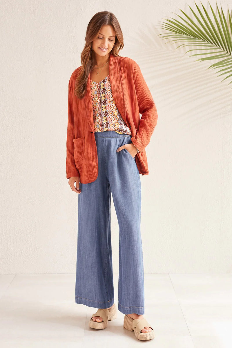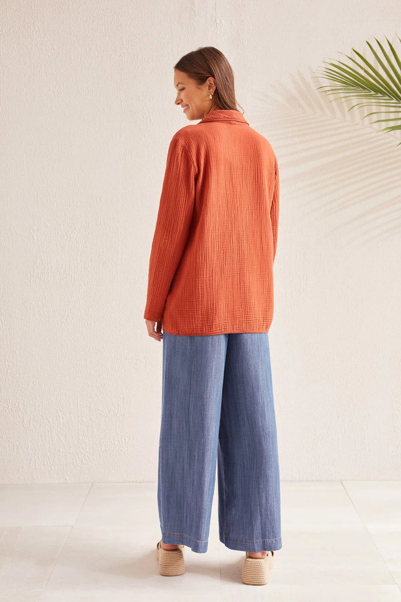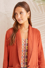 Give your work wardrobe a pick-me-up with this shawl collar blazer. We love the single-button design, patch pockets, and crinkled gauze cotton that delivers a lightweight feel and relaxed structure.