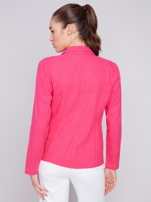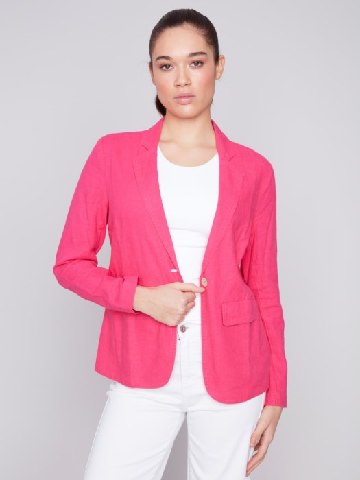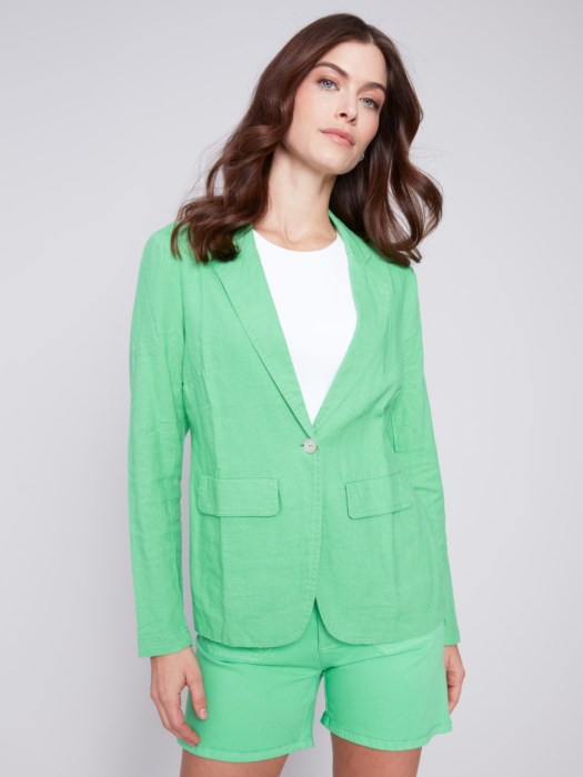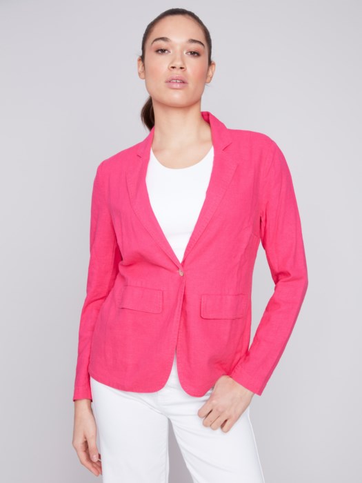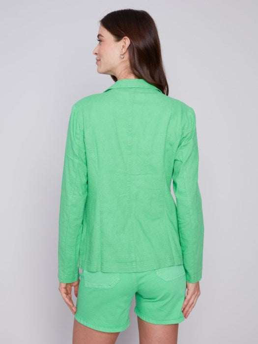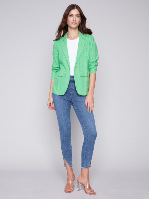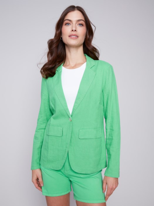 Stay stylish and on-trend with our bright linen blend blazer featuring a chic fringe collar. Perfect for adding a touch of sophistication to any outfit! Get yours now.