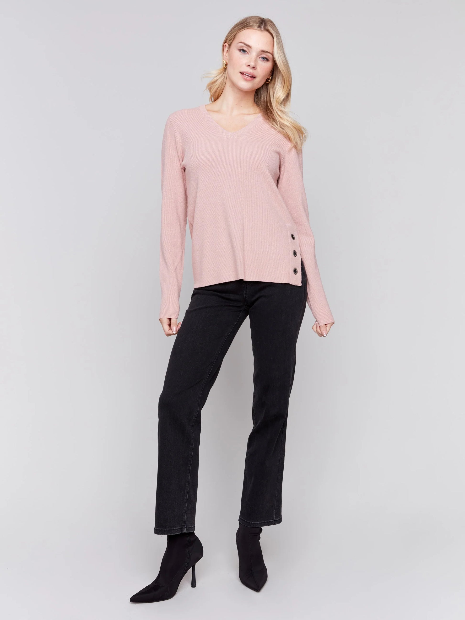 C.B C2569R V-Neck Sweater with Grommet Detail