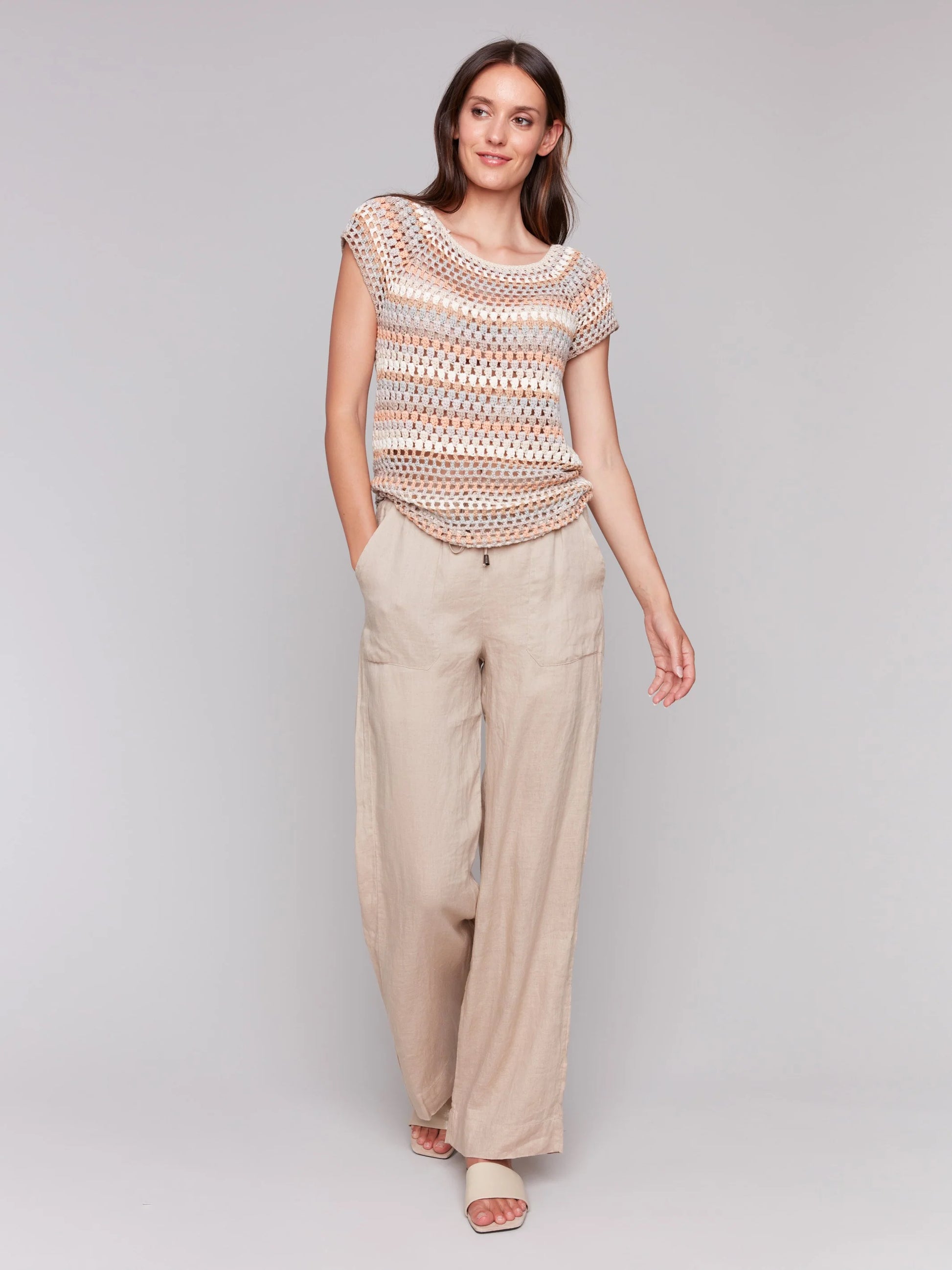 The Crochet Cap Sleeve Top brings artistic charm to any wardrobe. Designed with breathable fabric perfect for warm weather, its stripes add a playful touch. This casual, laid-back spring & summer top is the piece you didn’t know you needed.