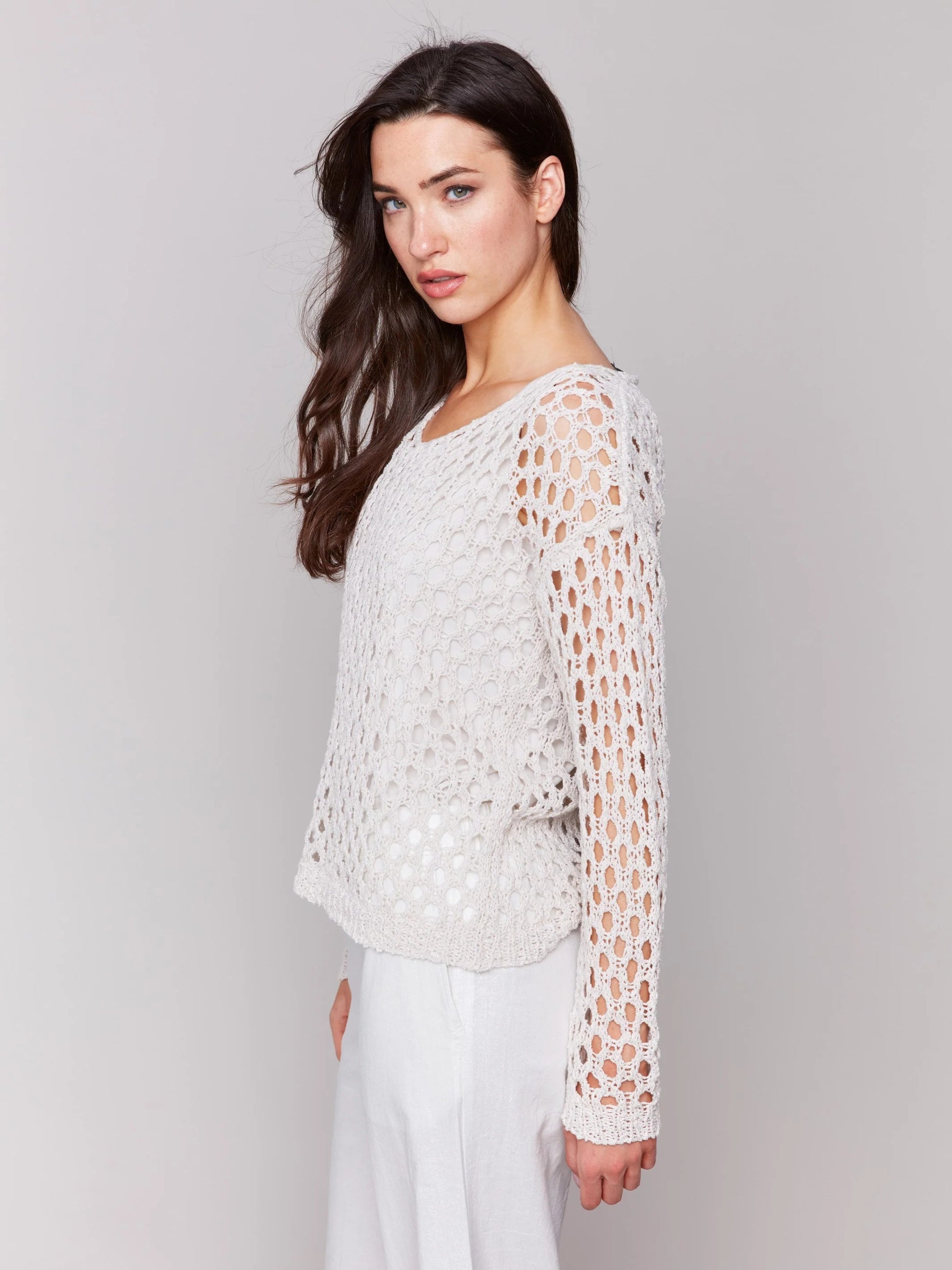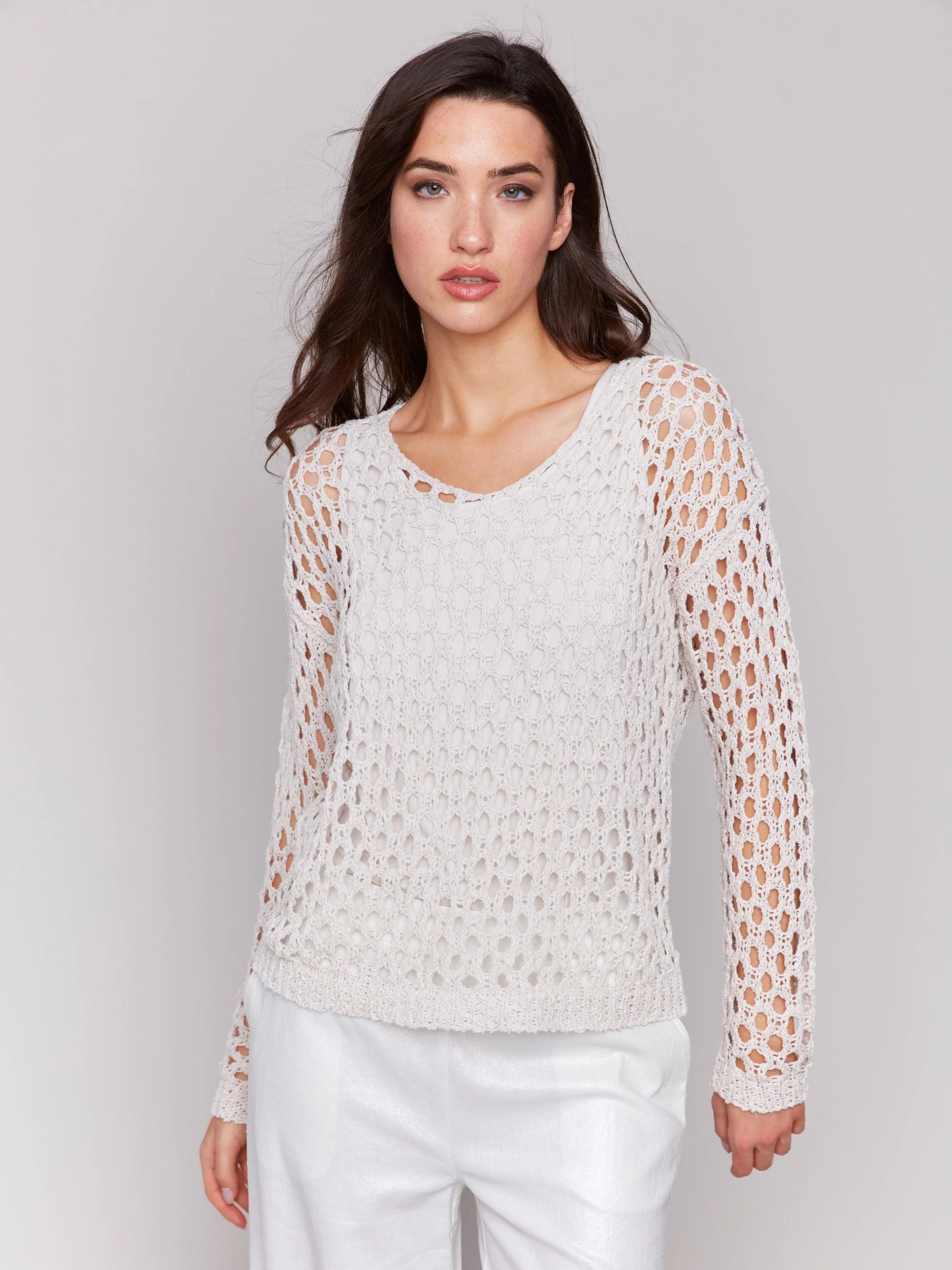 C.B C2796 Braided Fishnet V-Neck Sweater