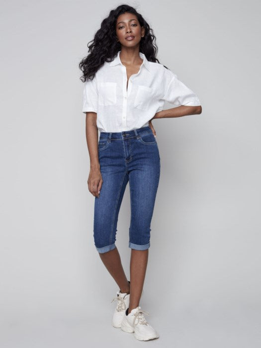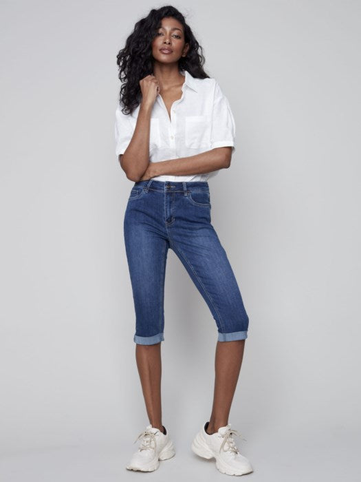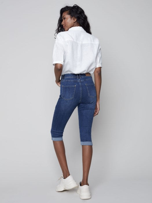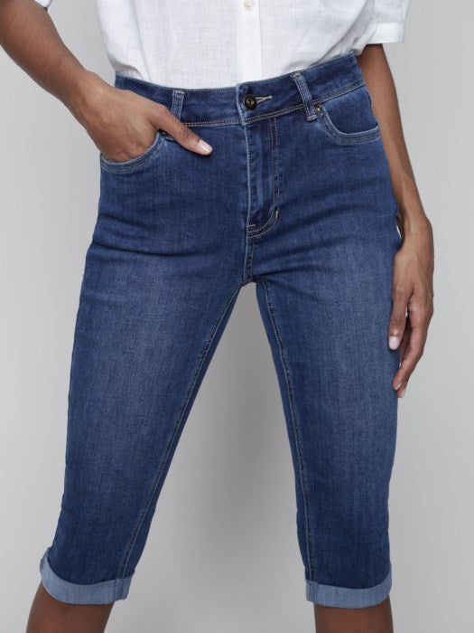 Stretch Denim Pedal Pusher Pant With Folded Hem