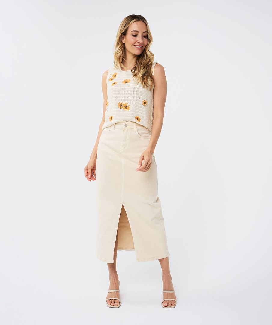 Brighten up your summer wardrobe with our exquisite crocheted top, complete with embroidered flowers on the front. The sleeveless design and round neckline make it an ideal choice for the season.