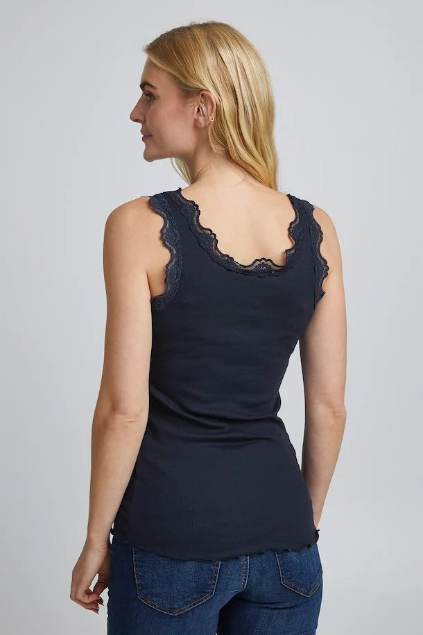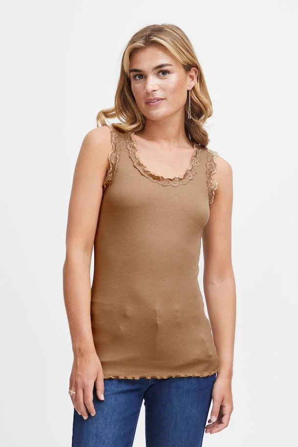 Fitted tank top in soft jersey with a lace detail around the neck and arms