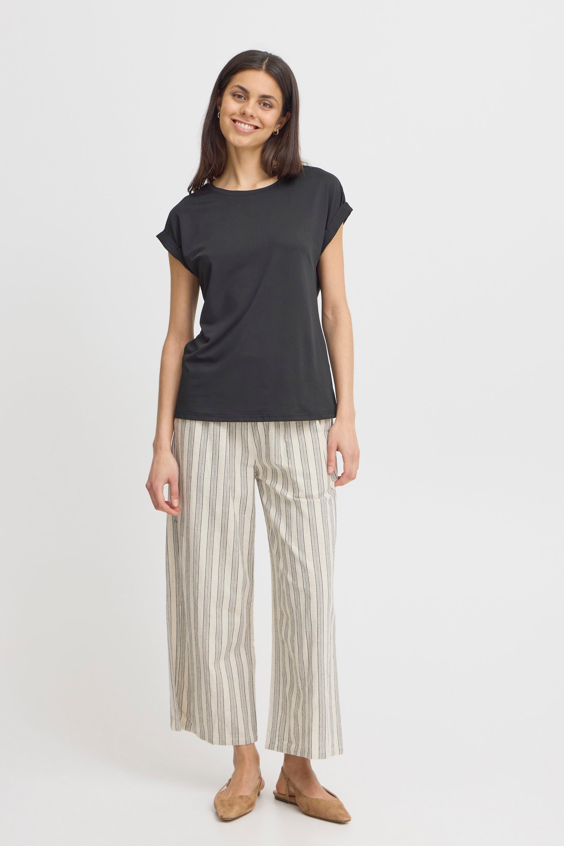 This classic black T-shirt combines simplicity with elegance, making it a versatile staple for any wardrobe. It features a soft, smooth fabric with a relaxed fit, offering all-day comfort. The short sleeves are neatly cuffed for a touch of style, while the rounded neckline provides a clean, flattering look. Perfect for pairing with jeans, trousers, or a skirt, this T-shirt effortlessly transitions from casual day-wear to a more polished, layered look.