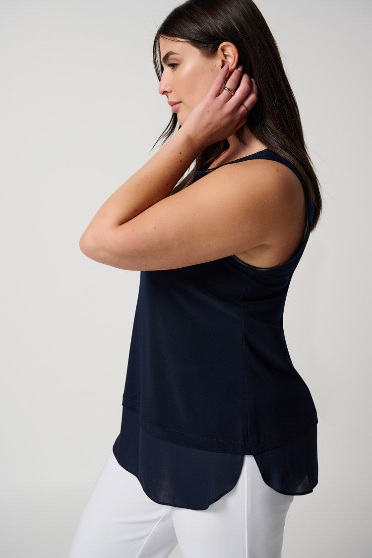 This layer hem camisole offers a clean and understated design with an elegant contour. It features a fitted structure as well as a delicate scoop neck to flatter and inspire. Perfect as a standalone wardrobe item or worn underneath a blazer. A simple addition to your closet to pull it all together. Made from a soft knit blend.