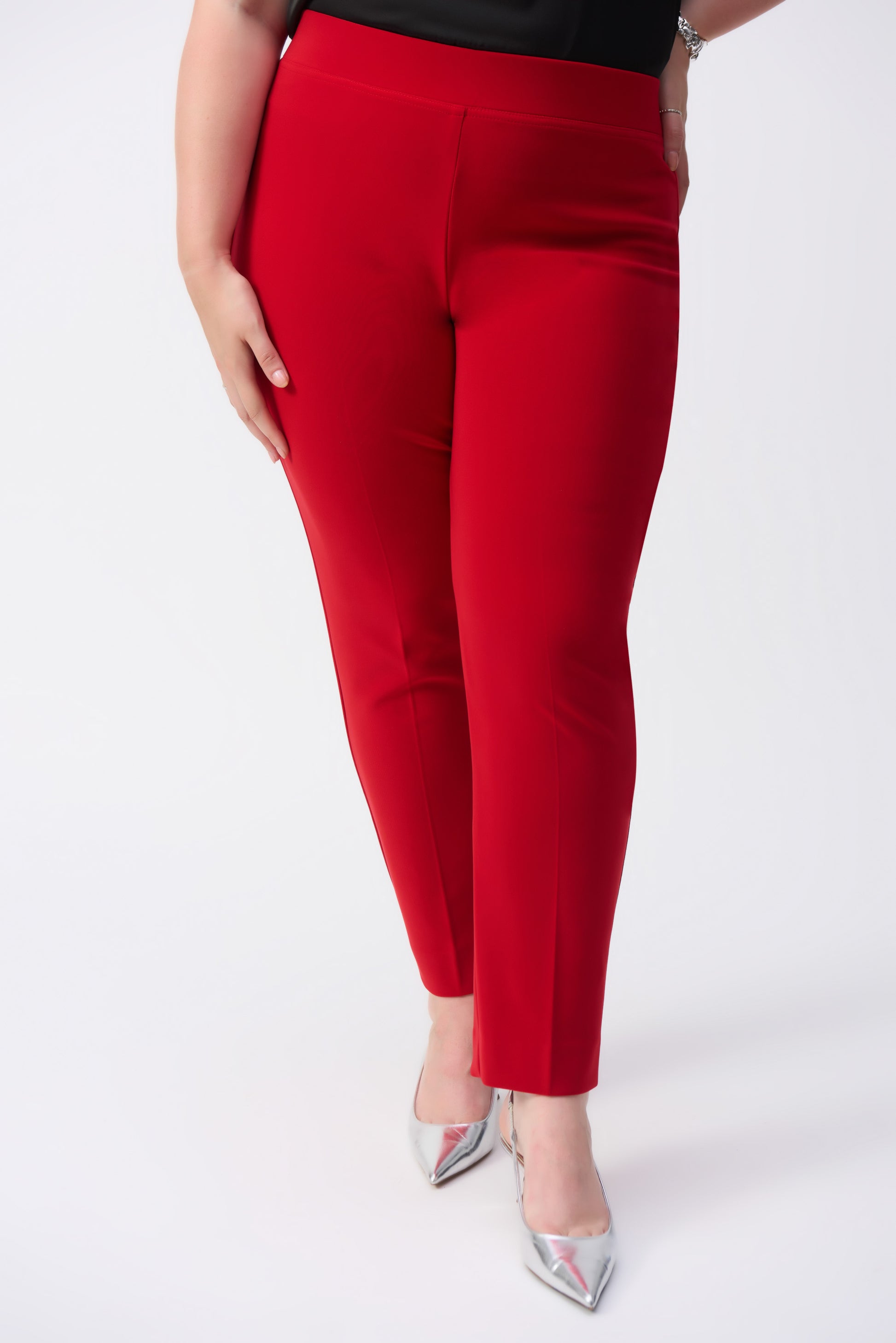 If you're a woman-on-the-go searching for the perfect everyday pants, then look no further. This straight-fit pull-on pant is ideal for the woman who prioritizes comfort and versatility. The flattering silky knit material paired with a covered elastic waistband creates an effortless style, while the slits on the back bottom legs give a classy detail.