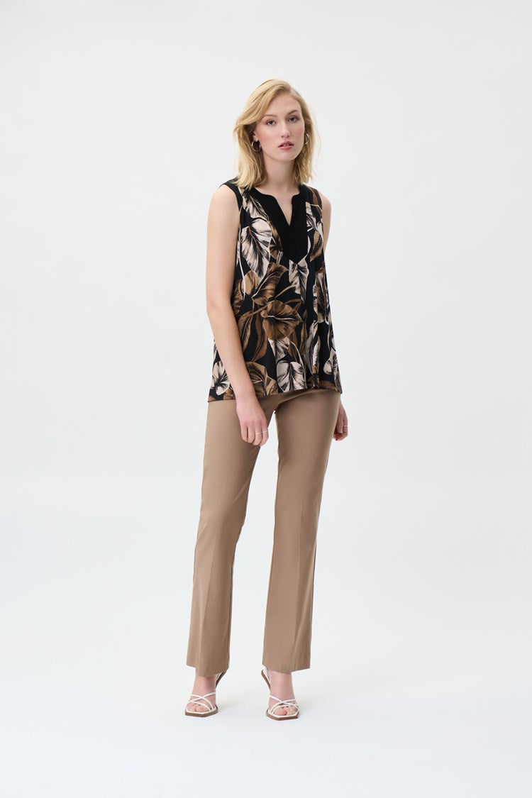 Add a tropical vibe to your summer wardrobe with this sleeveless V-neck top. Crafted from a luxe silky knit material in a classy island-inspired print, it features a mandarin collar and a pleat detail on the back. The A-line silhouette skims your shape and gives a relaxed feeling.