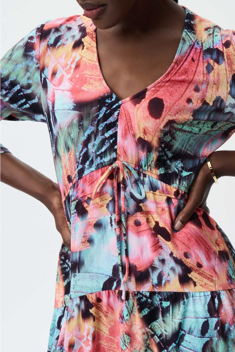 Beautiful fashion is in bloom with this printed 3/4 sleeve dress. Adorned with an animal-inspired abstract pattern. Pair this dress with strappy sandals and a floppy hat for a chic summertime ensemble.