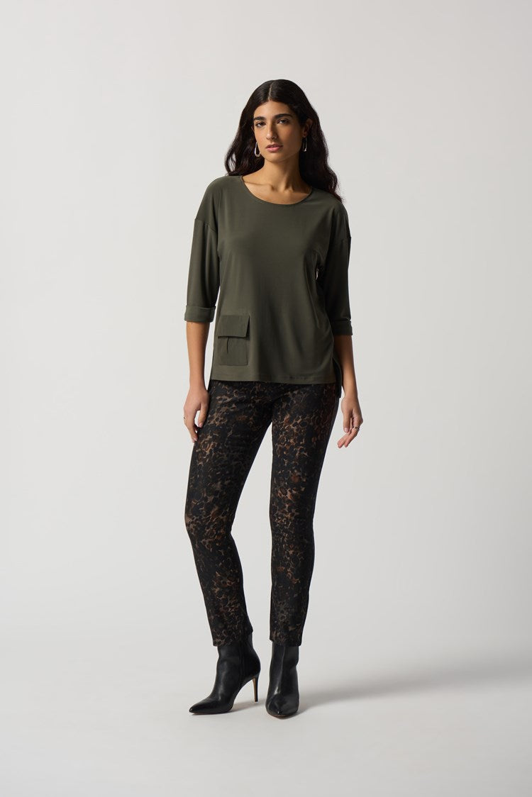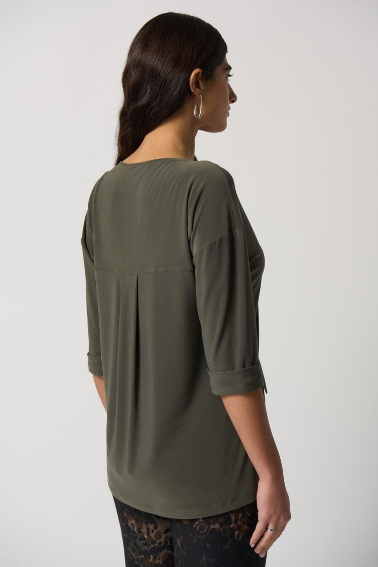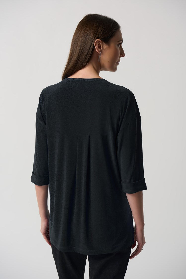 Made from smooth woven fabric, this silky knit top is a piece you can feel comfortable in. No attribute has been glanced over—instead, every element of this top's design has been executed intentionally. This top comes with a boxy silhouette and three-quarter dolman sleeves with folded cuffs. A practical side pocket adds an everyday feel to it.