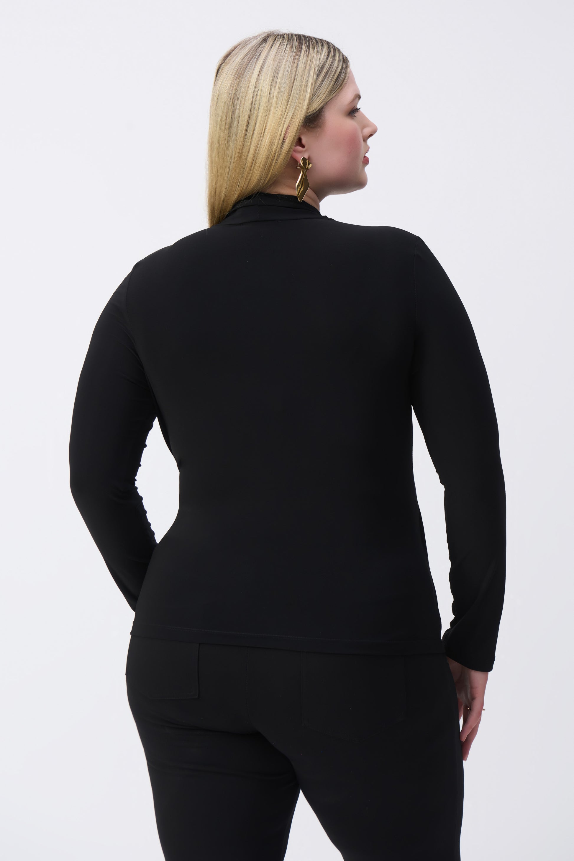 A bold display of timeless sophistication, this silky knit top possesses that unique flair you’ve been looking for. The wrap bodice features a chic raised neckline at the front creating a polished look while the fitted silhouette, complemented by long straight sleeves, exudes effortless glamour. A lovely abstract ornament attached on the side adds a touch more of finesse to this exquisite design.