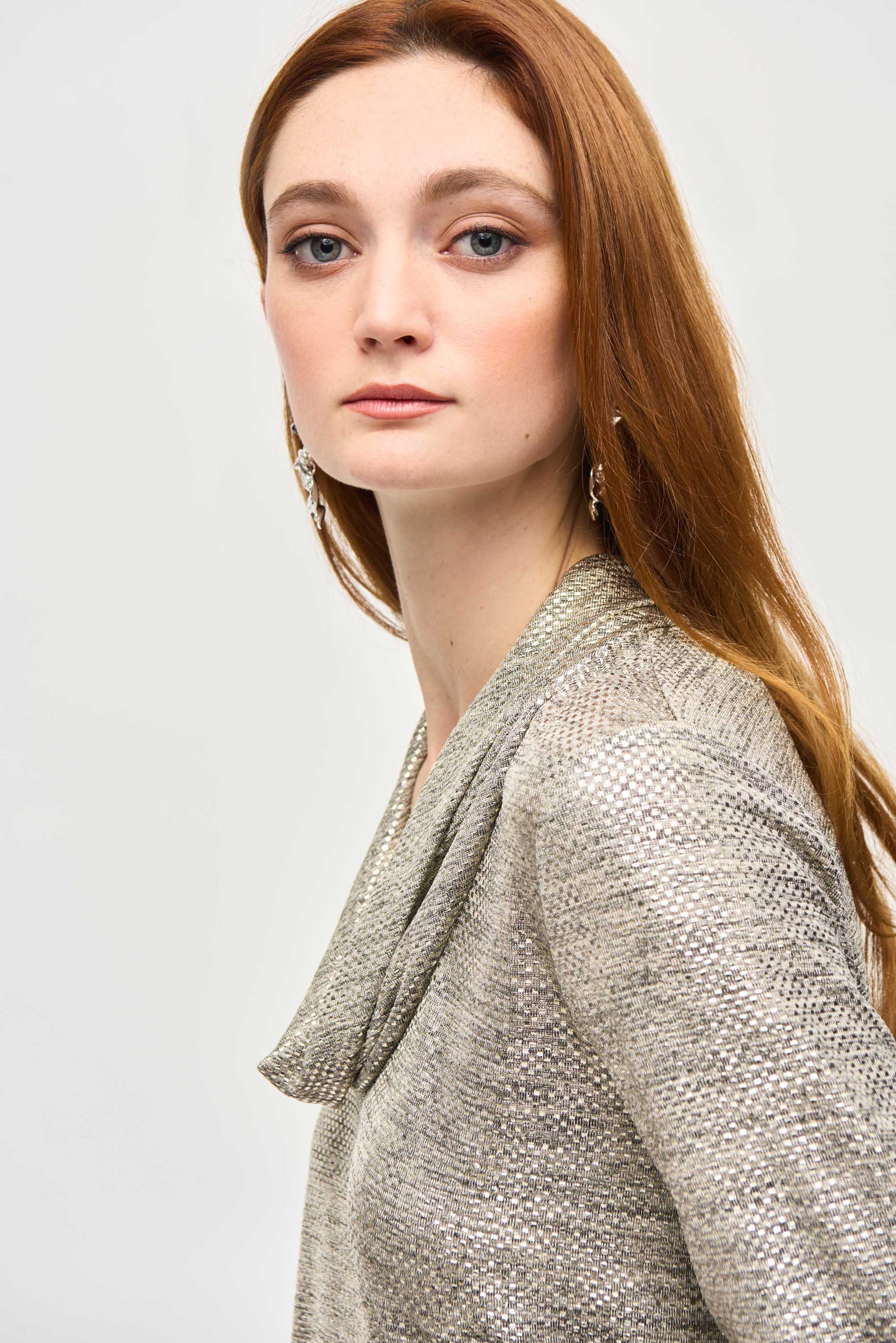 J.R 243167 Foiled Knit Cowl Collar Top