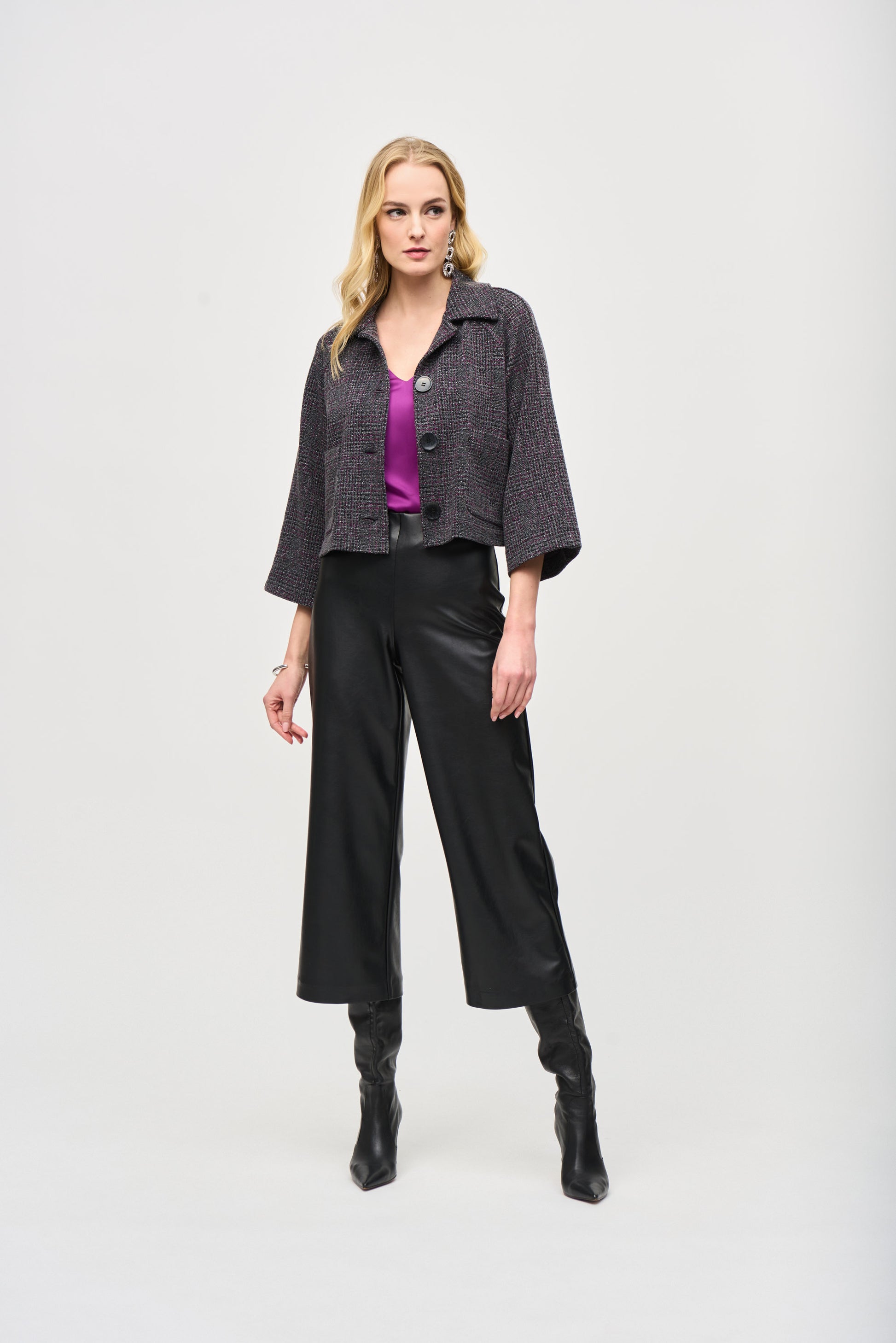 J.R 243241 Jacquard Sweater Plaid Boxy Jacket