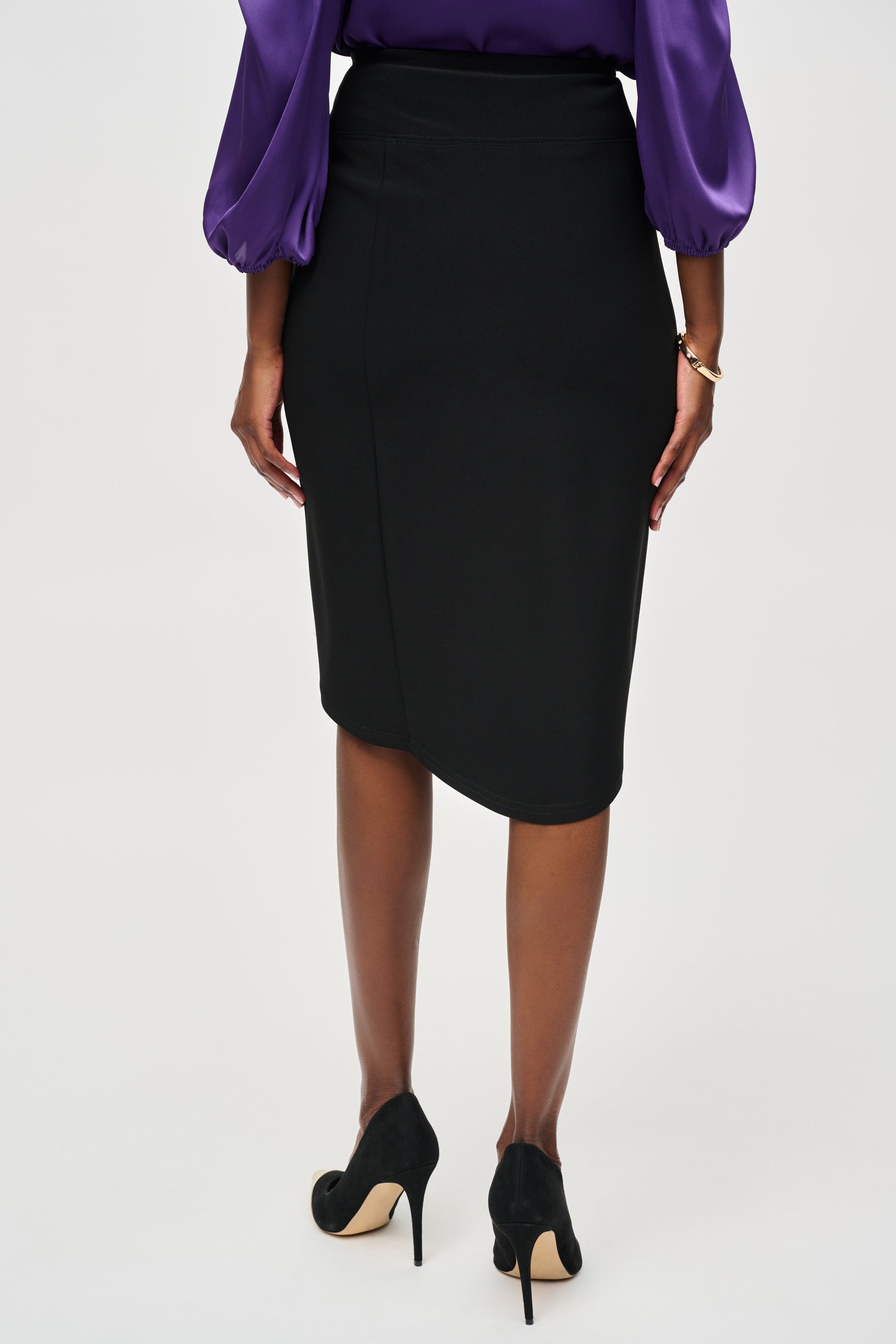This silky knit pencil skirt boasts a soft contour waistband, side panels, and a high-low hem, transitioning effortlessly from the office to cocktail hour. Versatile and timeless, it serves as the perfect canvas for crafting a variety of stylish ensembles.