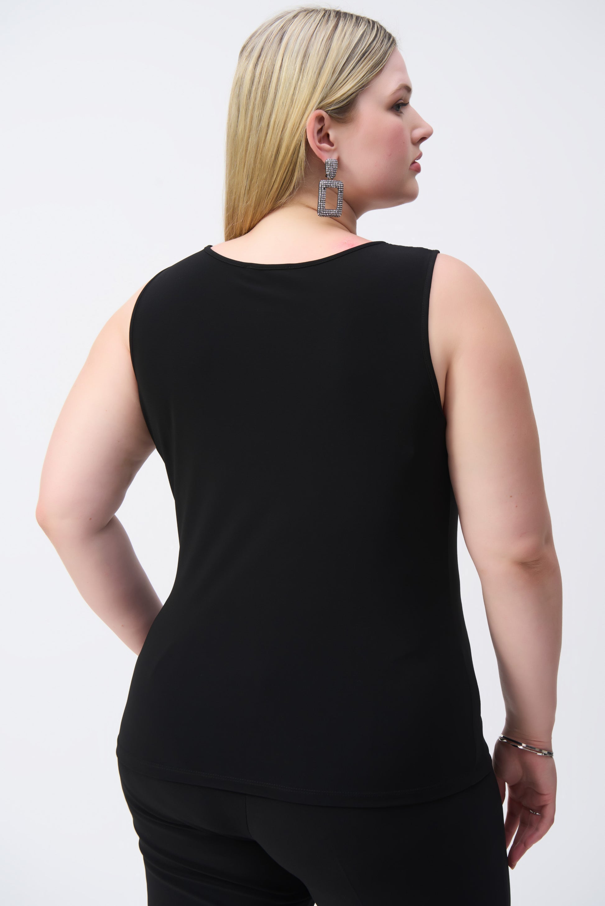 This versatile silky knit sleeveless top featuring a sheer mesh yoke is a must-have layering piece. Embellished with tone-on-tone rhinestones, you'll love to mix and match it with many items in your closet. Part of the Signature collection.