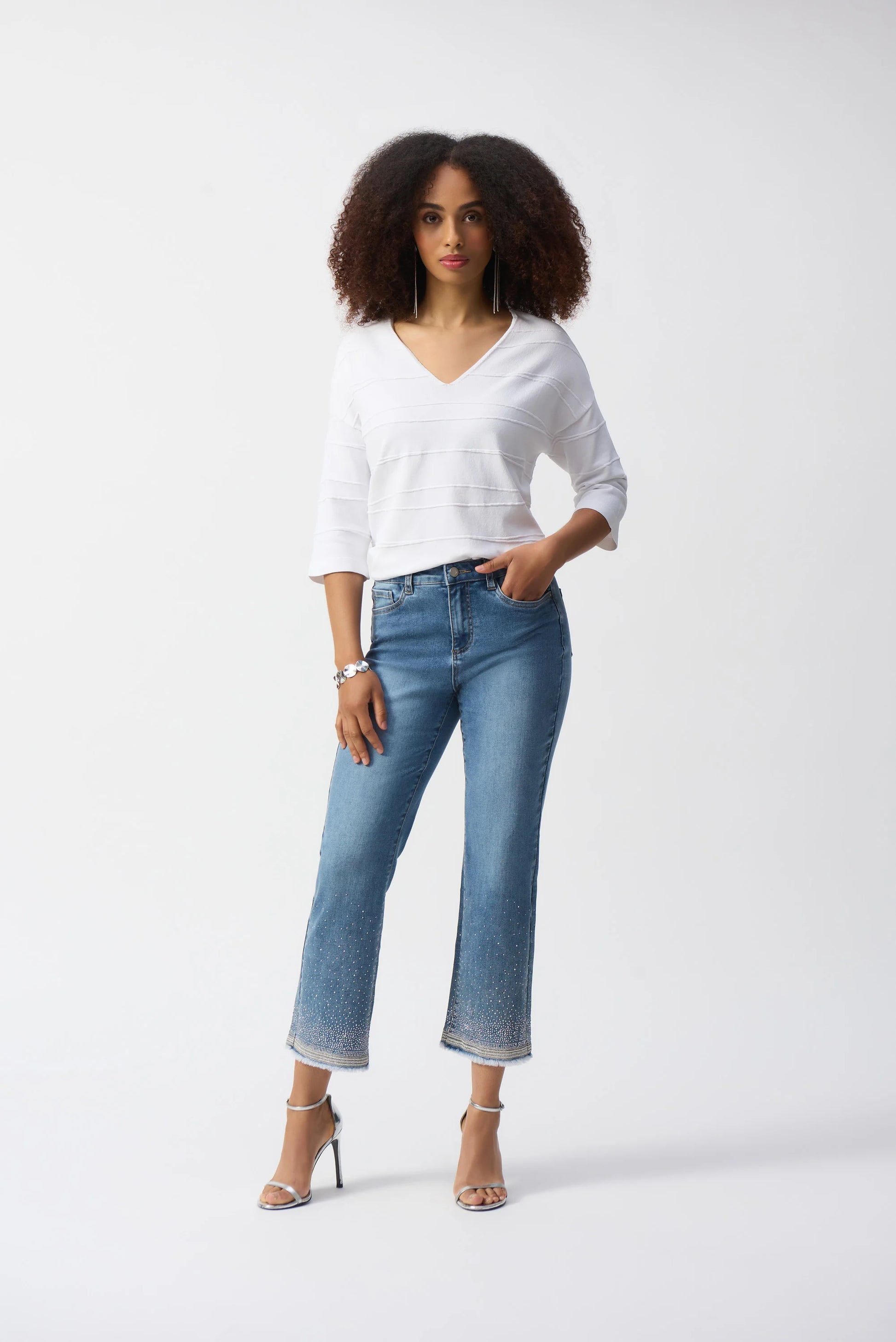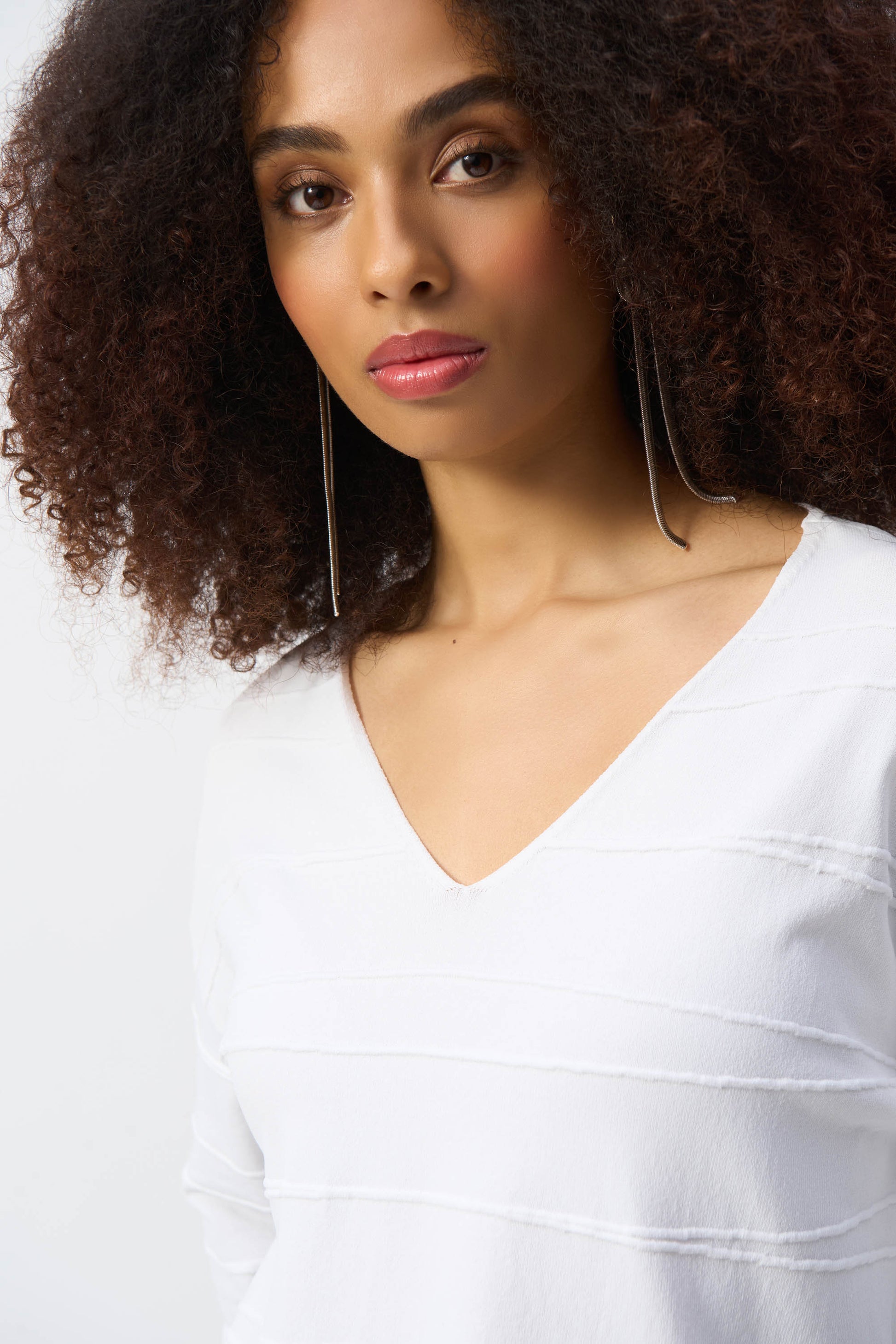 For a relaxed look without compromising on style, opt for this sweater knit pullover. Accented by tonal stripes, roomy three-quarter sleeves, and a v-neck, this lightweight top carries an airy silhouette that's comfortably chic.
