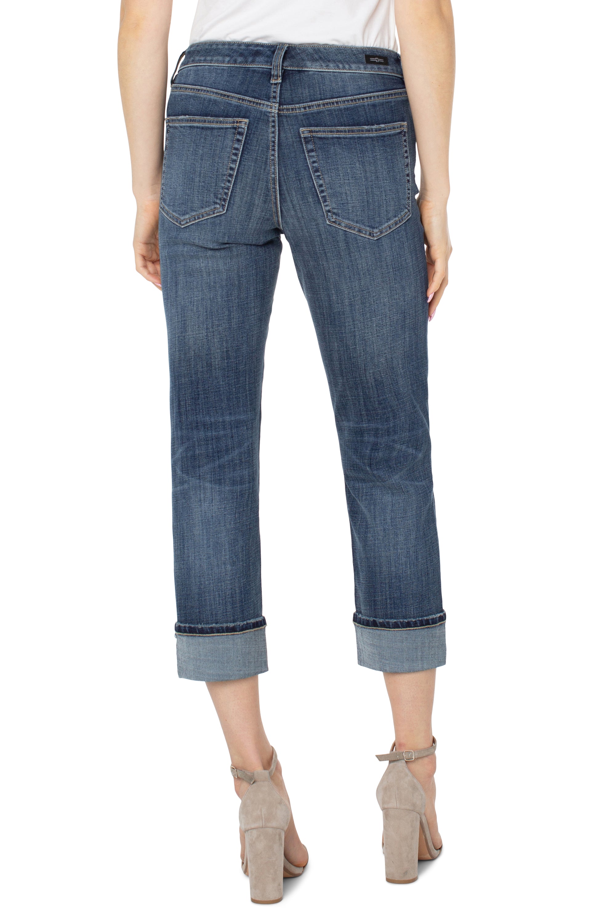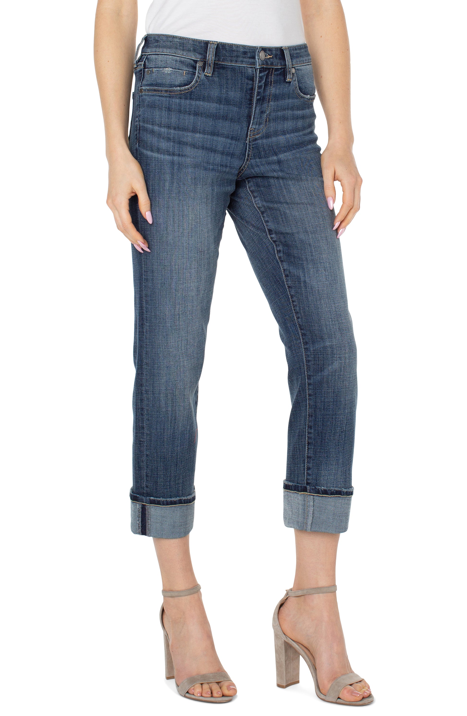 The Marley is our signature girlfriend jean with a beautiful silhouette. Fits slimmer than a boyfriend but gives you the perfect amount of leg-room. A wide cuff on our girlfriend jean shows off your fabulous footwear. Our vintage denim adds just the right amount of tasteful destruction.