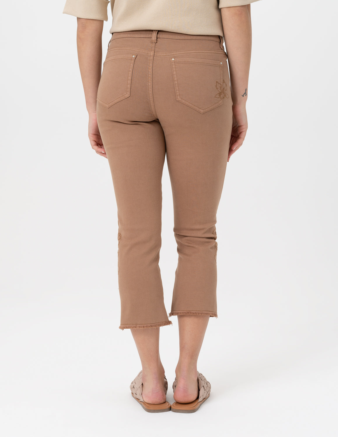 Such a fun and soft capri with lots of stretch! These go to capris feature 5-pockets, zipper front and a frayed hem.