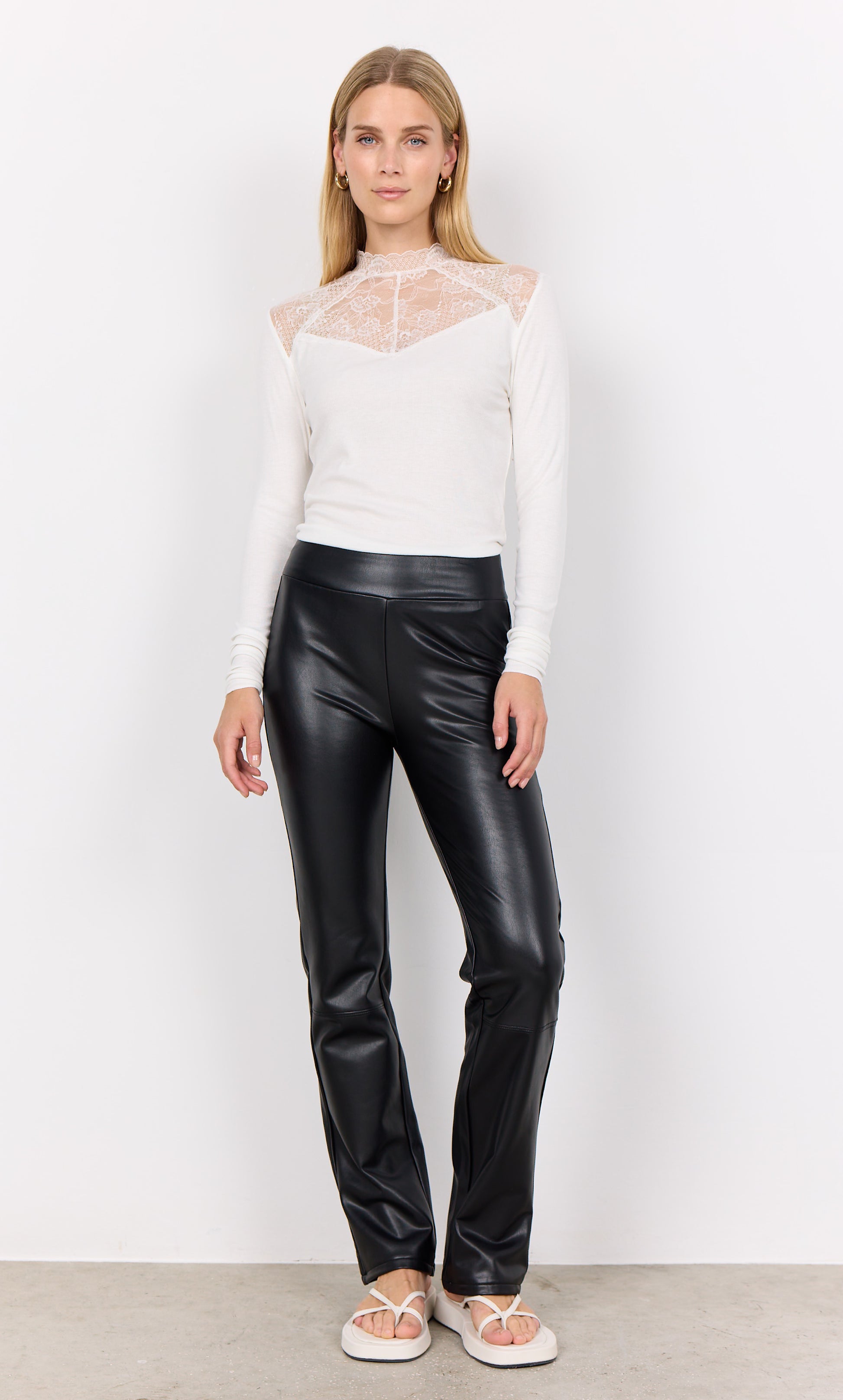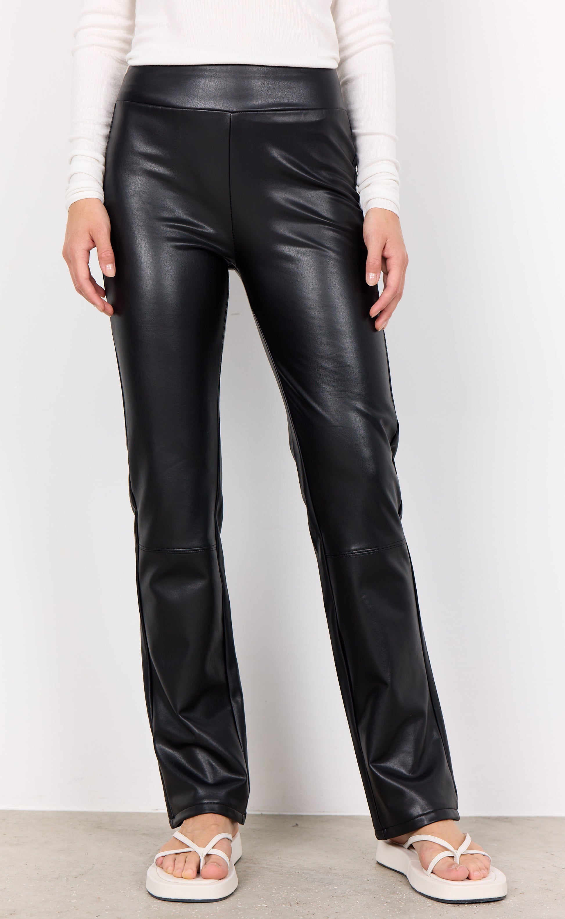 Introducing our sleek and feminine PU leather pants, crafted from 100% polyurethane for a polished and modern look. These high-waisted pants feature an elastic waistband for comfort and a tight fit that flatters your silhouette. Perfect for adding a touch of edge to your outfit, these versatile pants can be styled under an oversized shirt or a dress for a chic, layered look. Elevate your wardrobe with this bold and stylish essential.