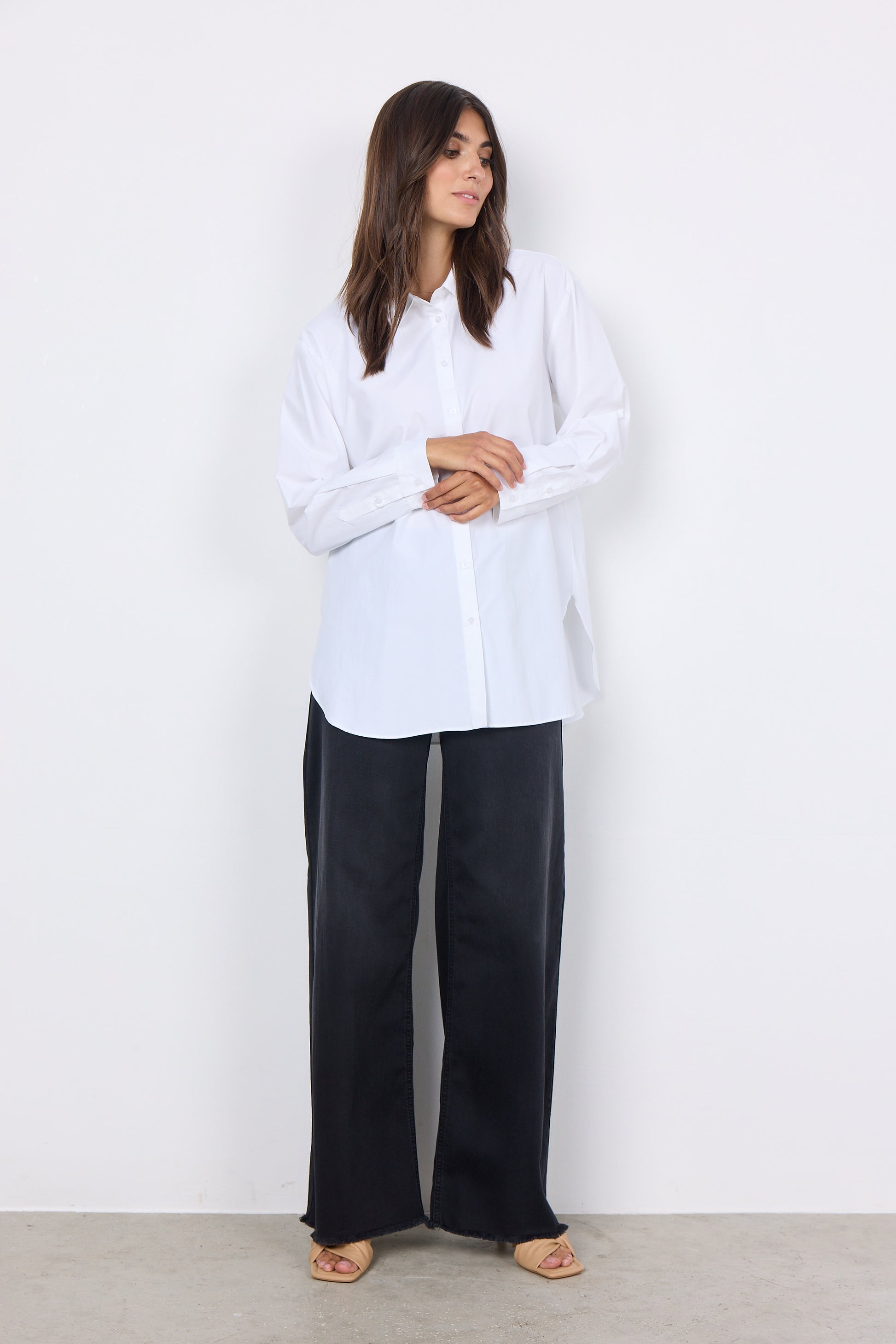 A classic oversized blouse made from a nice blend of recycled polyester and organic cotton. This lovely shirt has a classic shirt collar, a button closure, long sleeves and an oversized fit. Style this classic shirt with a pair of straight fit jeans and some sneakers for a casual yet classic look