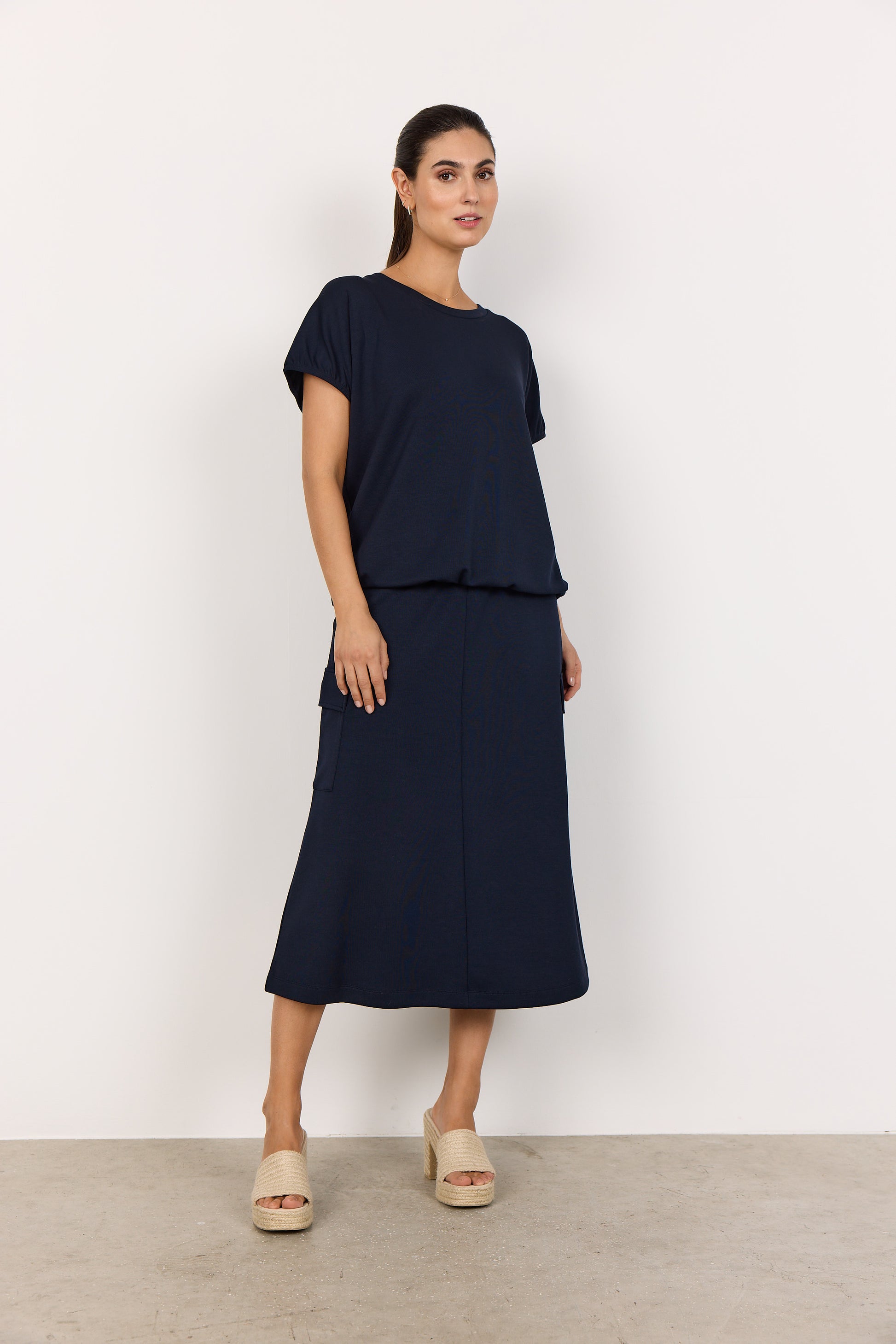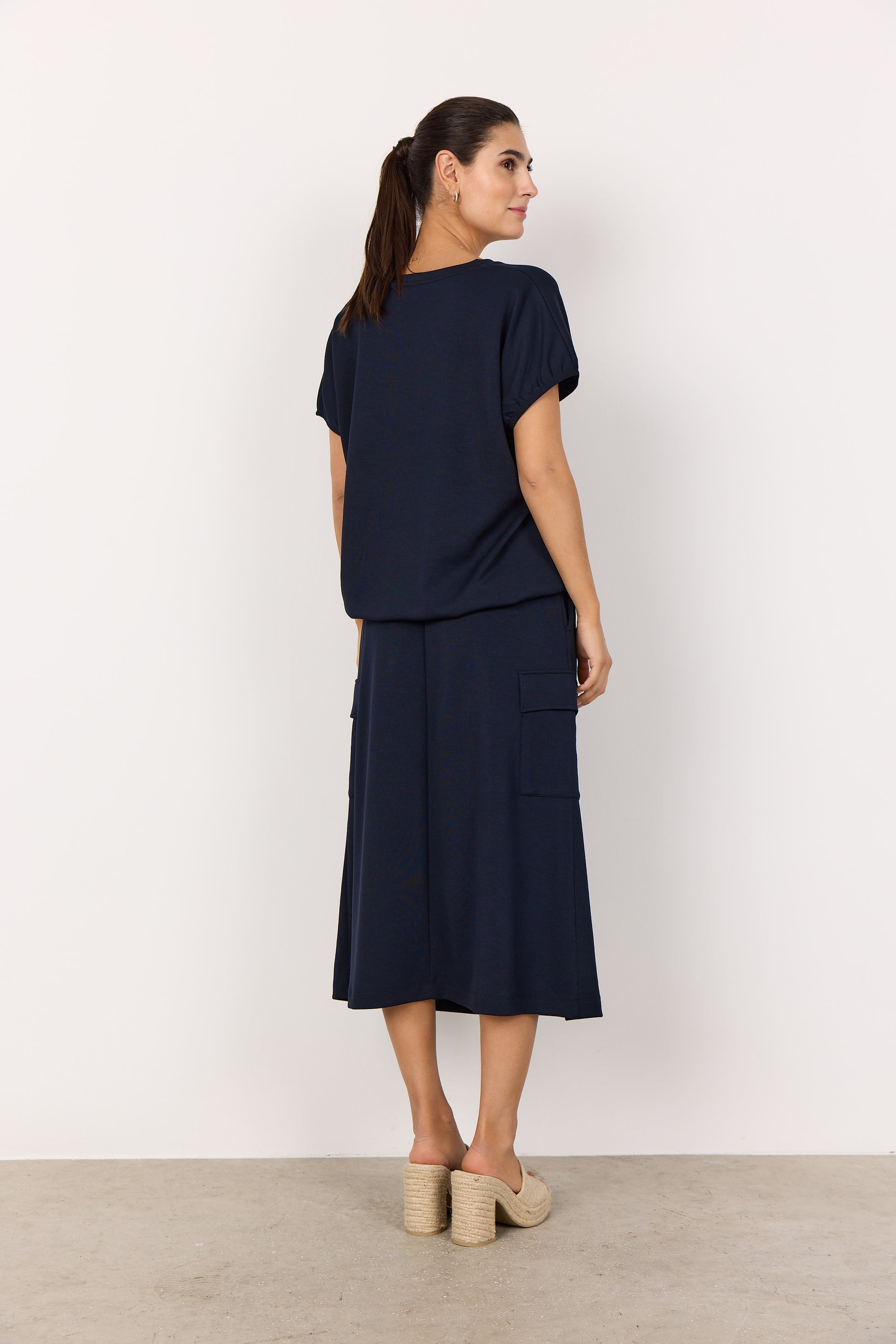 A casual T-shirt crafted from a soft blend of 48% Modal, 48% Polyester, and 4% Elastane. It features a round neckline, short sleeves, and a drawstring detail at the hem for an adjustable fit. Pair it with jeans or casual trousers for a relaxed day out.