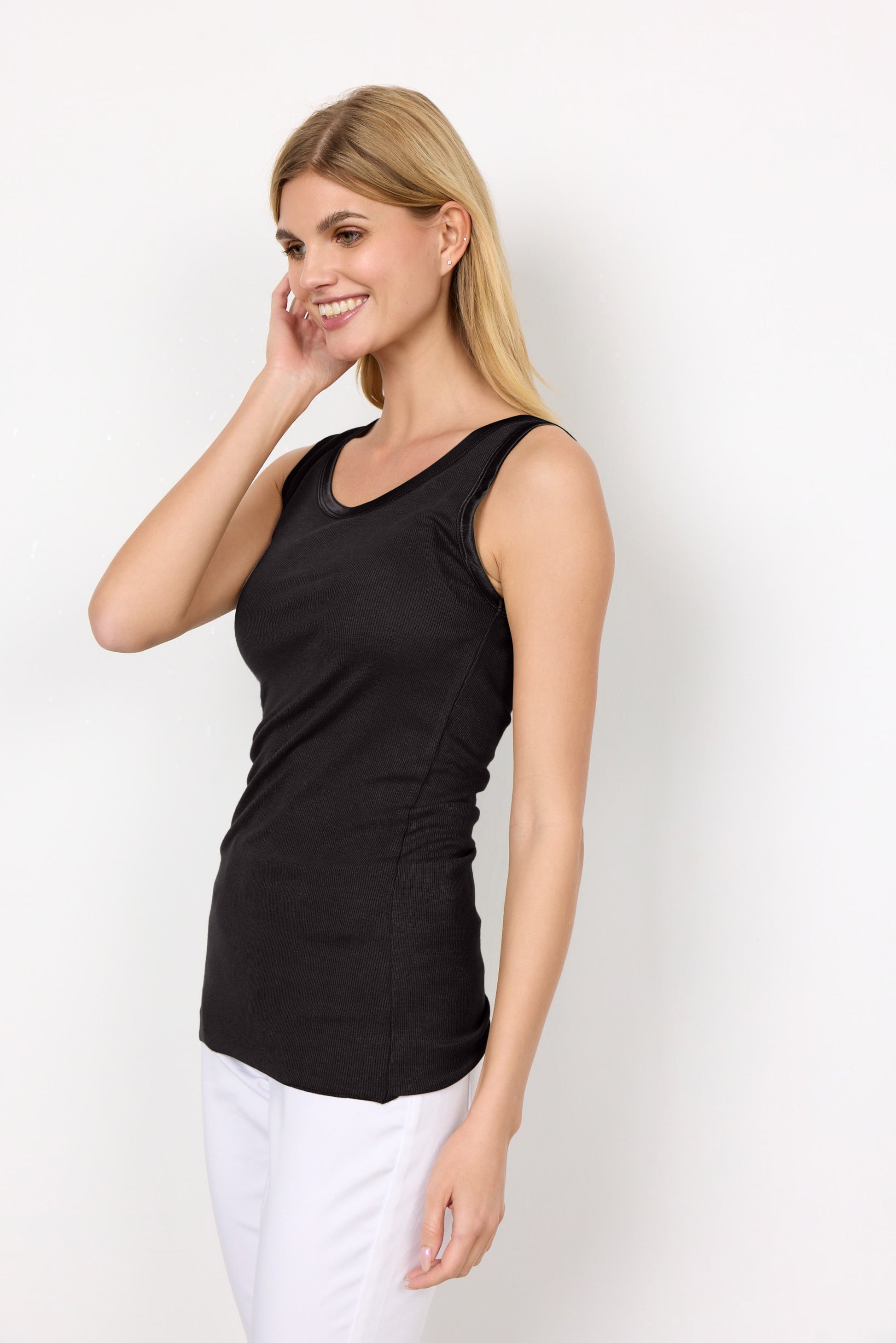 A basic top in a nice viscose and elasthane blend quality. The top has a classic fit, a round neck, a ribbed effect and a nice detail at the collar. This wardrobe must-have can be used under any upper.